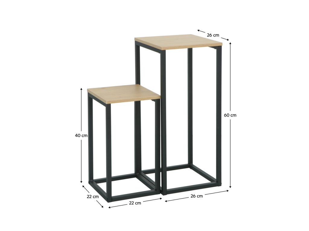 Rozmery menšieho stolíka (ŠxHxV): 22x22x40 cm