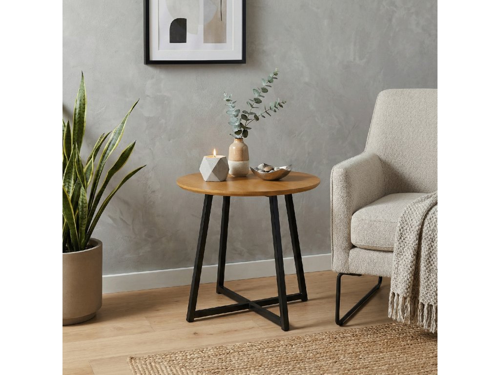 Príručný stolík, dub/čierna, DELIK