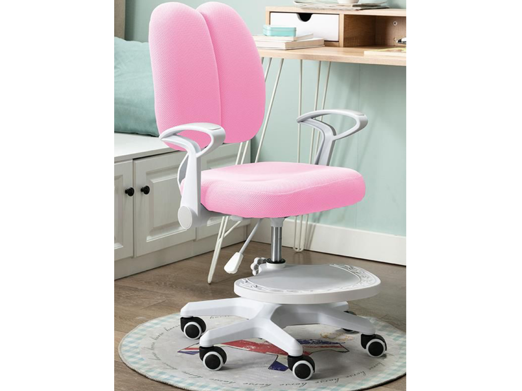 Rastúca stolička s podnožou a trakmi, ružová/biela, ANAIS