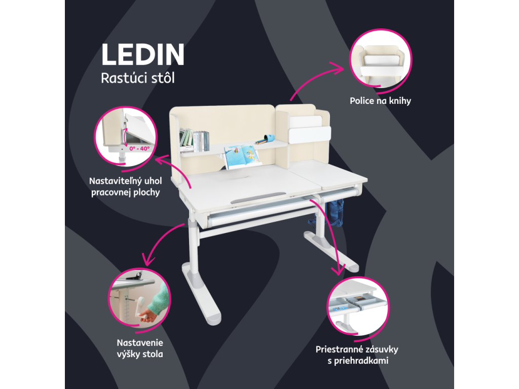 Výška stola a sklon pracovnej plochy sa nastavuje pomocou plynového piestu a páky