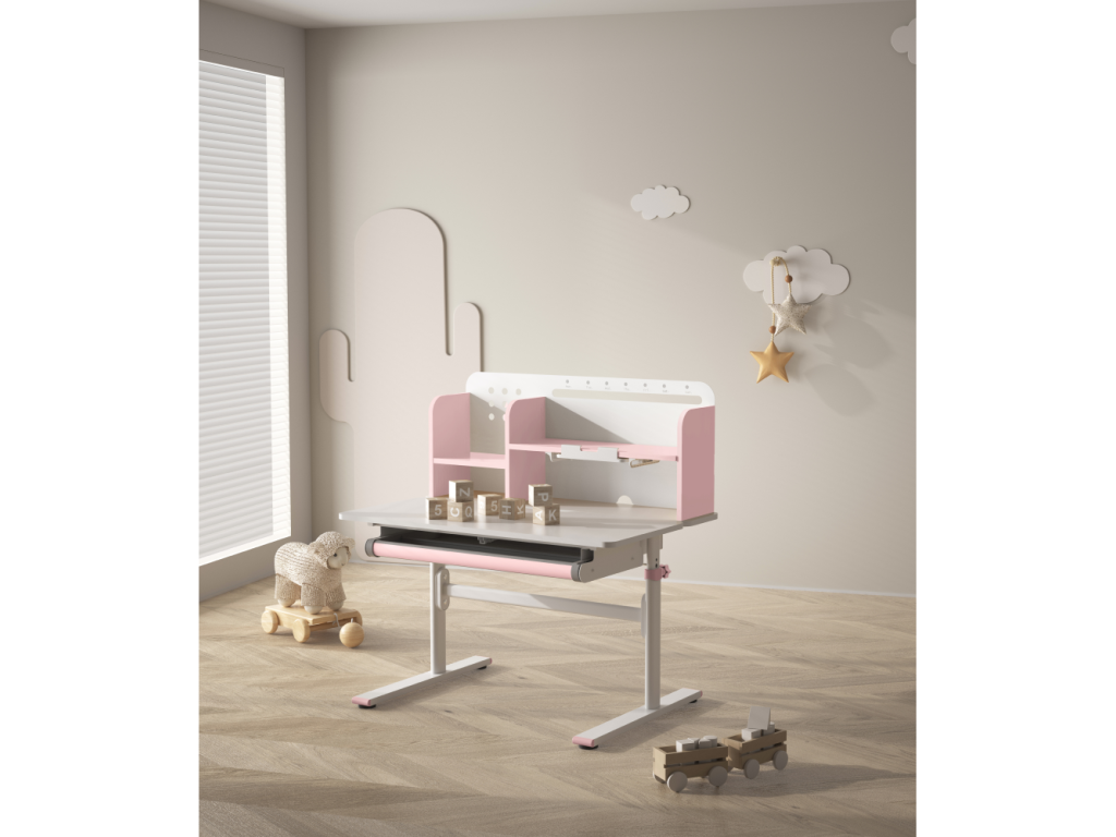 Rastúci písací stôl, ružová/biela, ADAN