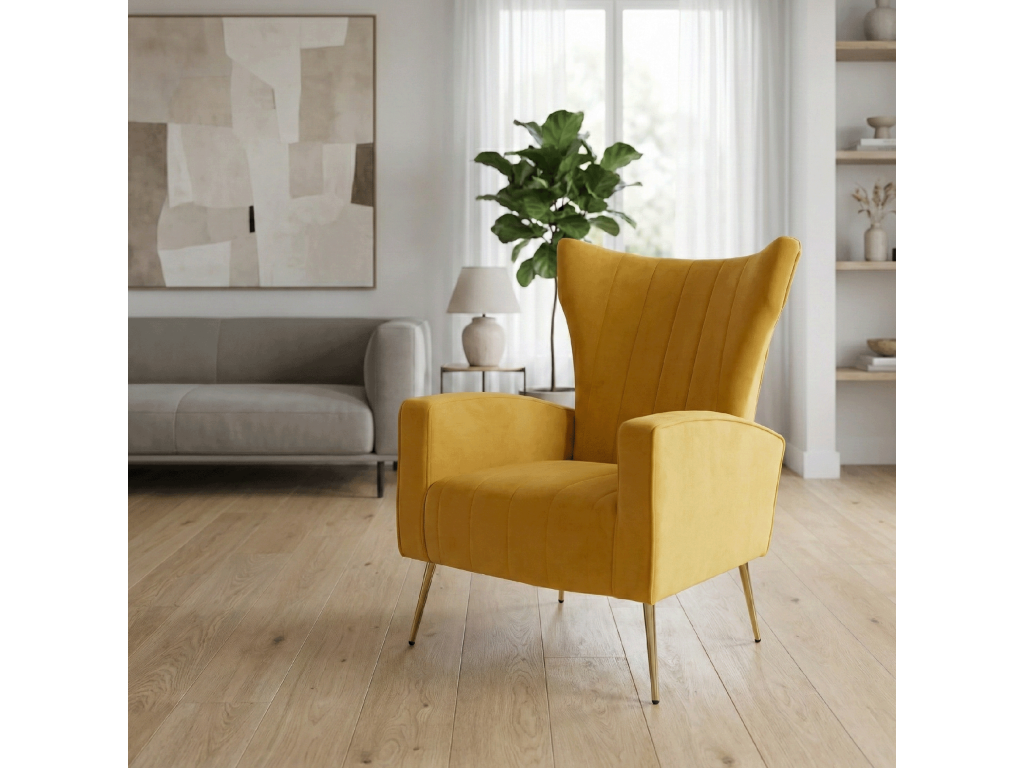Relaxačné kreslo, žltá Velvet látka, BARET