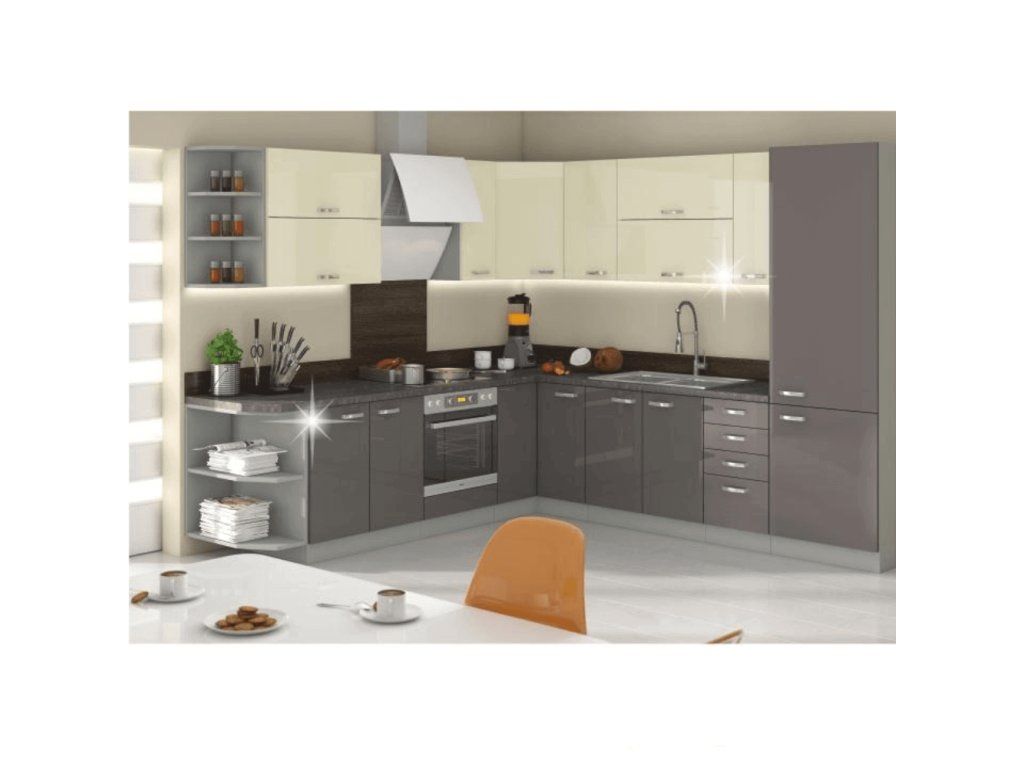 Spodné skrinky ku kuchyni PRADO sú dodávané bez pracovnej dosky. Pracovnú dosku v prevedení metalic brown v hrúbke 2,8 cm je možné doobjednať v cene 69 Eur/1 m. Možnosť dokúpiť univerzálny Ľ/P drez LAY ON.