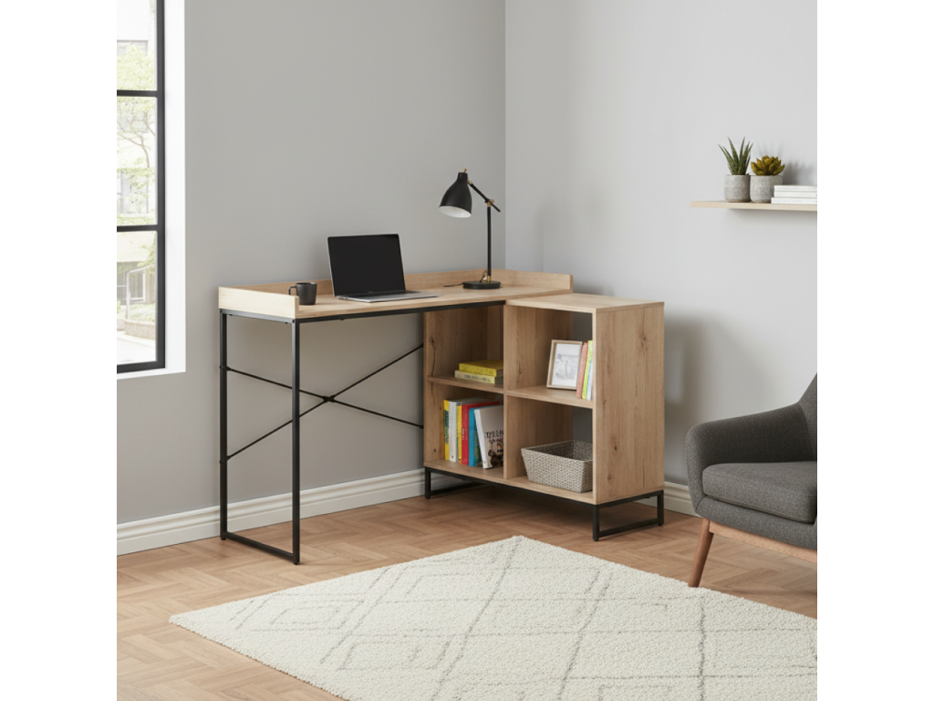 Rohový PC stôl, dub/čierna, ULOSTOL