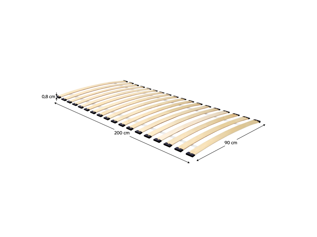 Každý rošt je o 1 cm užší a 5 cm kratší od udaného rozmeru, napr. 90x200 = 89x195 cm.
