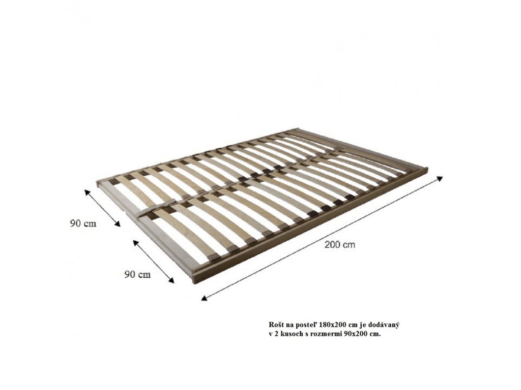 Rošt pri rozmere 160x200 a 180x200 je možné kúpiť len k posteli so stredovou deliacou lištou a je nutné si k nemu kúpiť 2ks matraca s rozmerom 80x200 alebo 90x200.