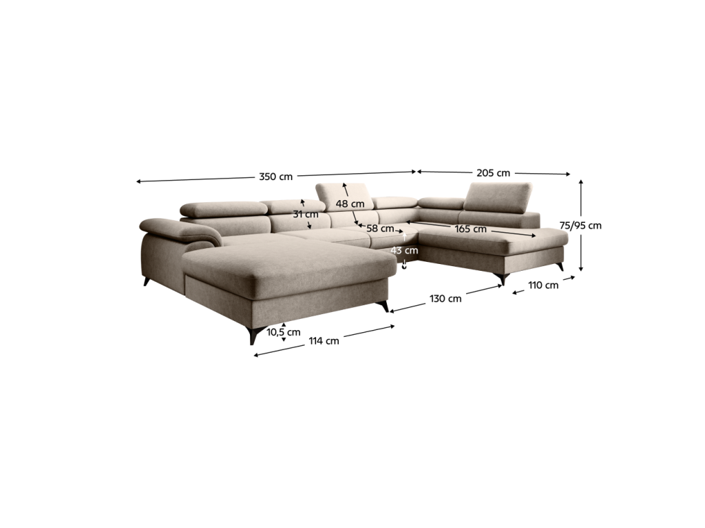 Rozmery (ŠxHxV): 350x205x75/95 cm