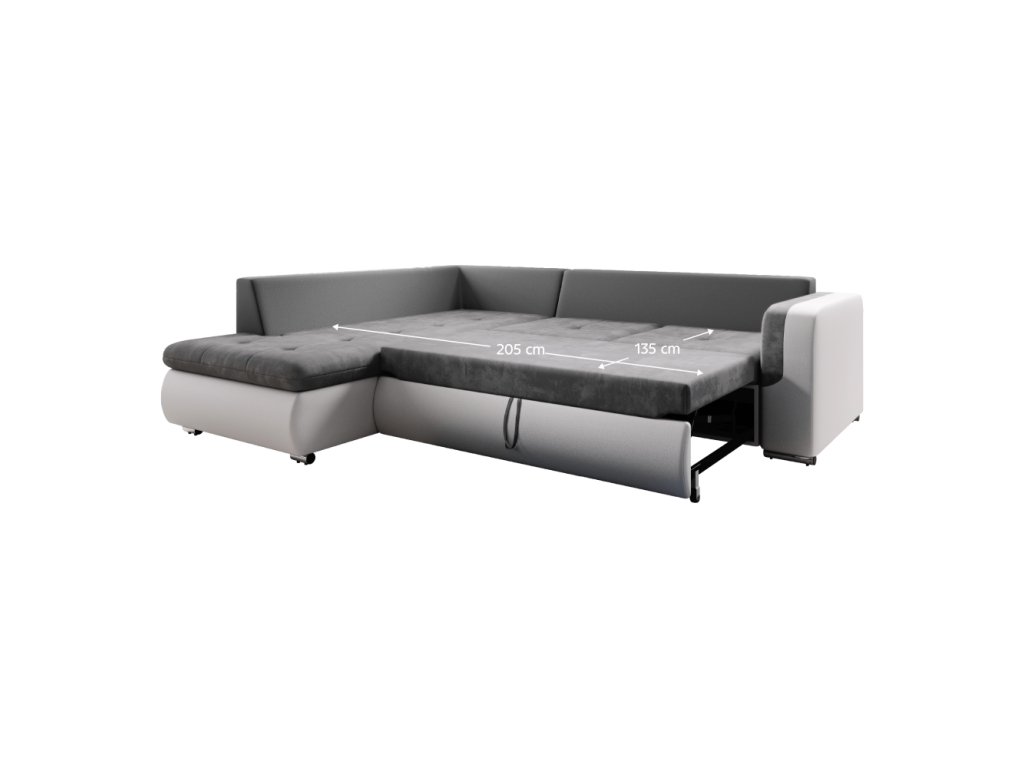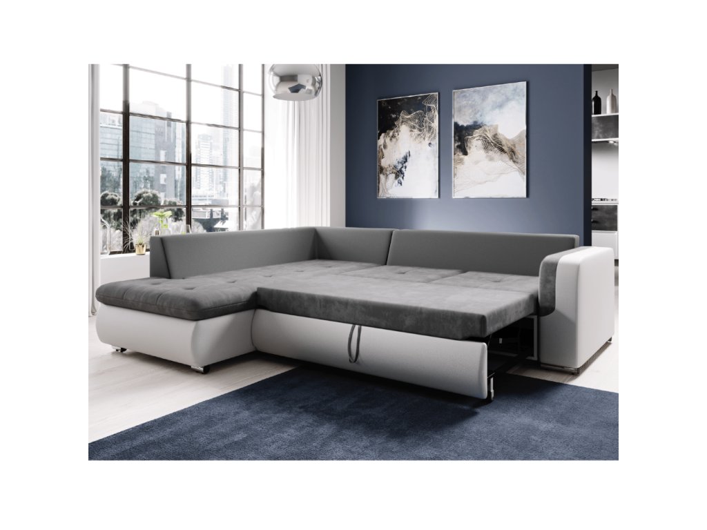 Rozkladacia sedacia súprava, biela/sivá, ľavá, FURUD L ROH