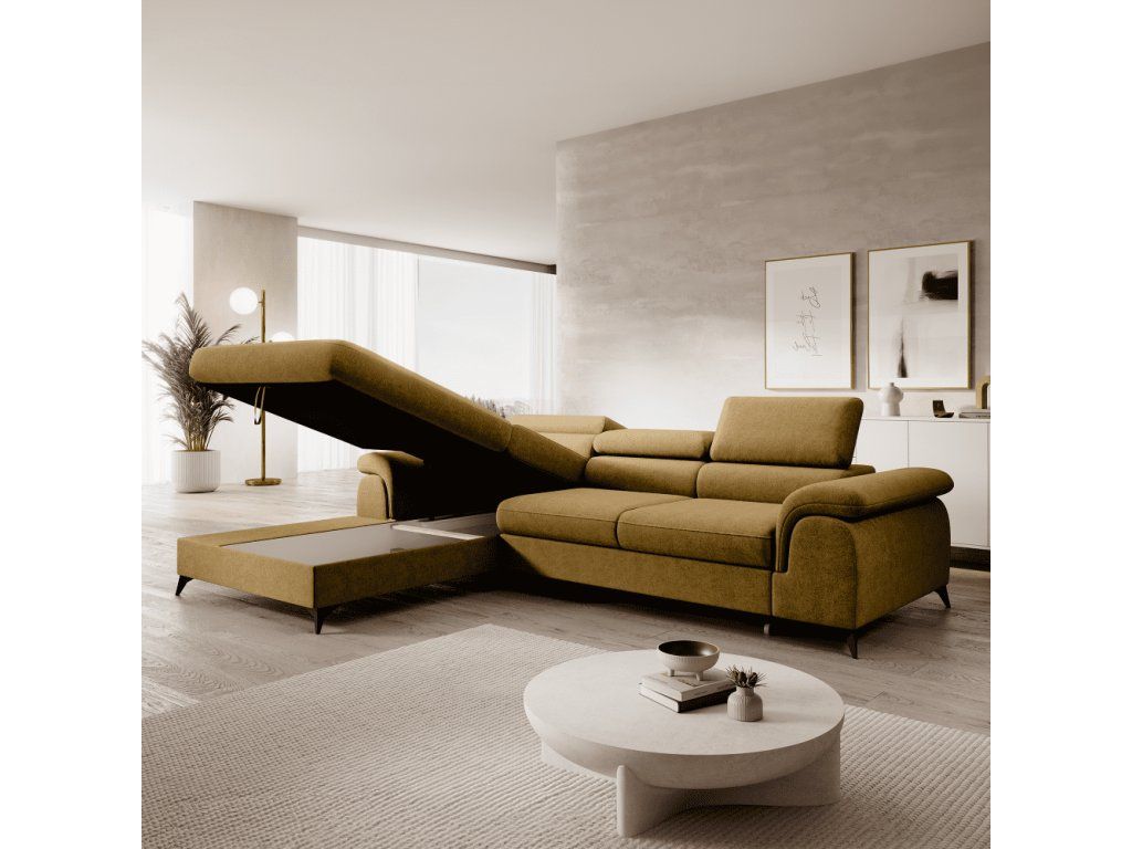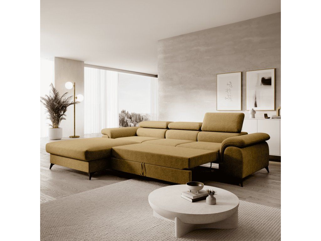 Rozkladacia sedacia súprava, horčicová, ľavá, HORTY ROH