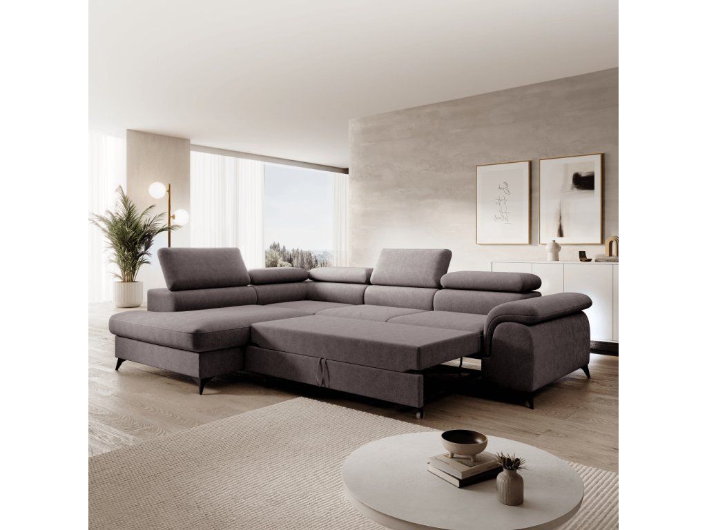 Rozkladacia sedacia súprava, sivohnedá, ľavá, PONY ROH