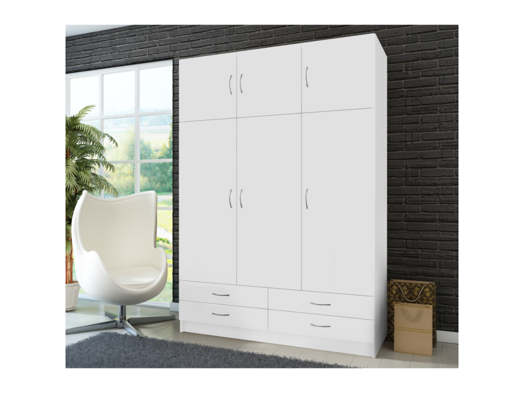 Šatníková skriňa, trojdverová, biela, GERI NEW