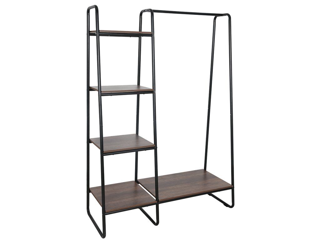 Šatníkový organizér/regál s policami, čierna/orech, ROBYN