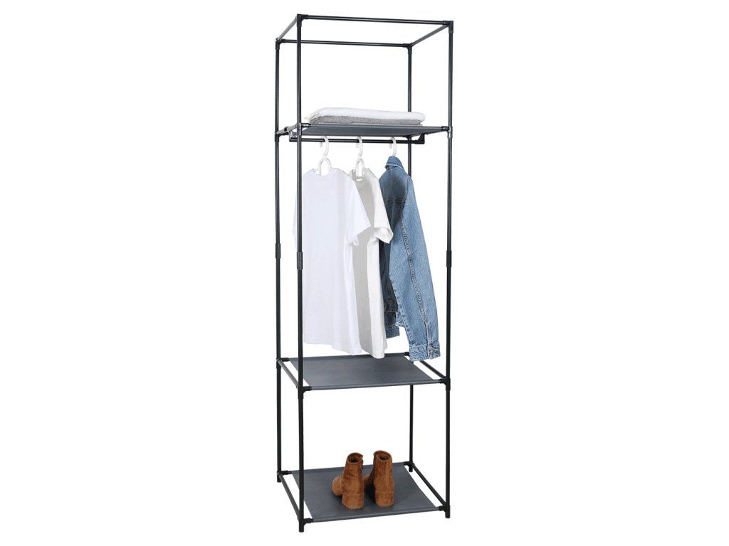 Šatníkový regál, kov/látka, čierna, ALBUS