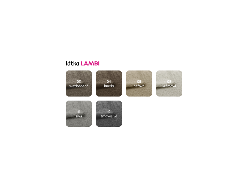 Materiál čalúnenie: látka Lambi 07Oderuodolnosť látky podľa testu Martindale: 50 000 oderov