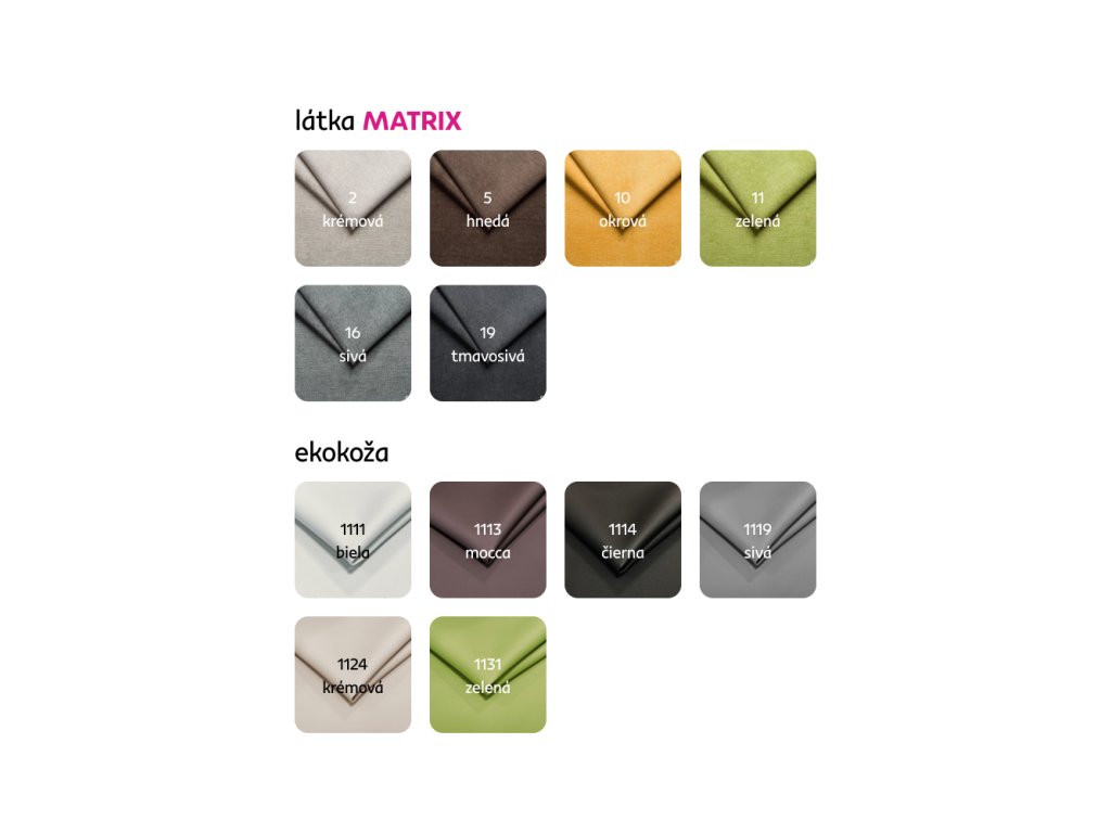 Materiál: ekokoža/látkaOderuodolnosť textílie Matrix podľa testu Martindale: 72 000 oderov