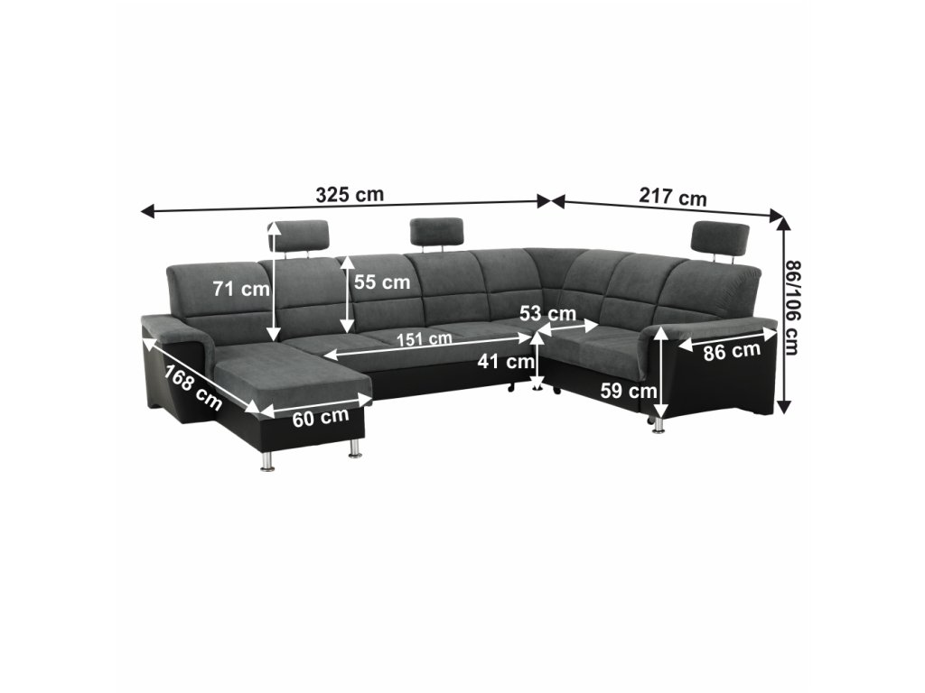 Rozmery (ŠxHxV): 325x168/217x86/106 cm