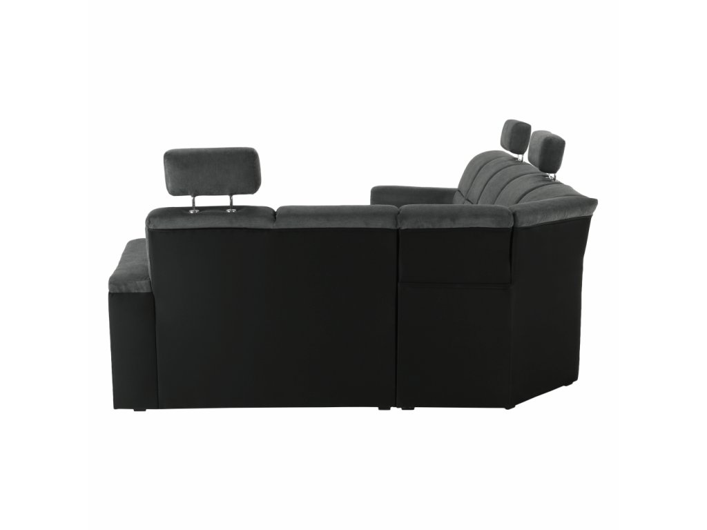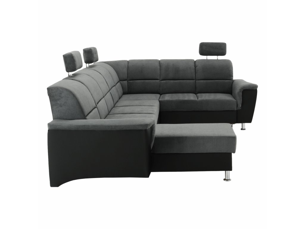 Sedacia súprava, ekokoža čierna/látka tmavosivá, pravá, SANTIAGO U