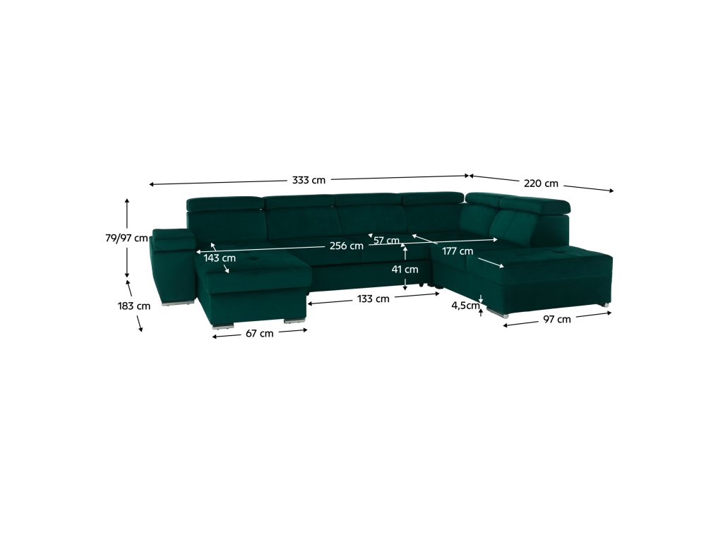 Rozmery: (ŠxHxV): 333x181/220x79/97 cm