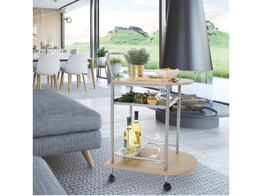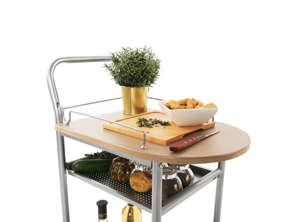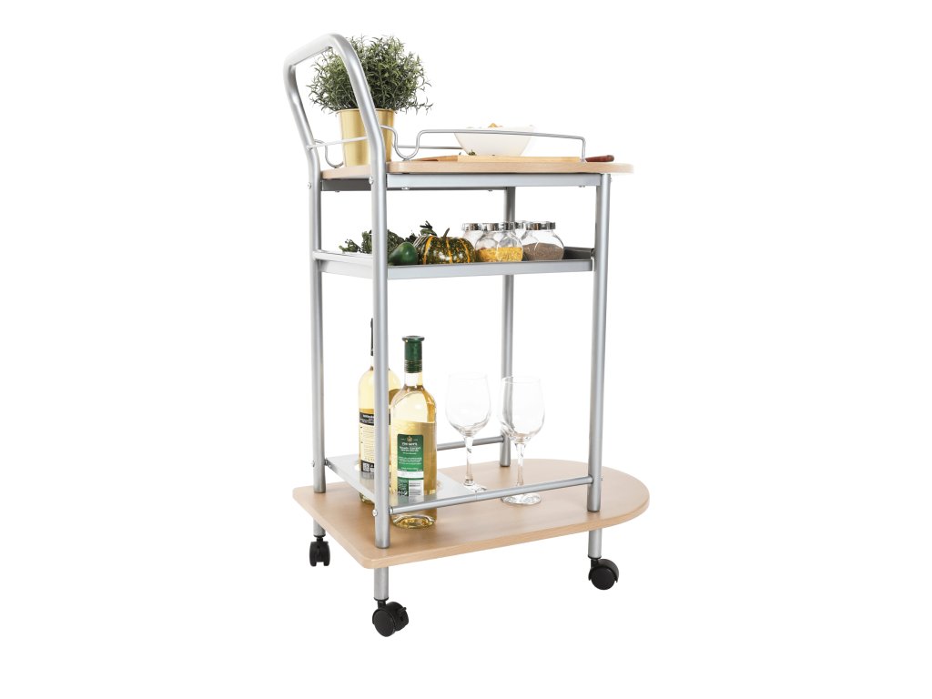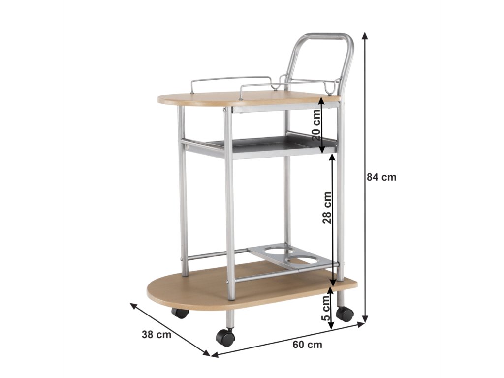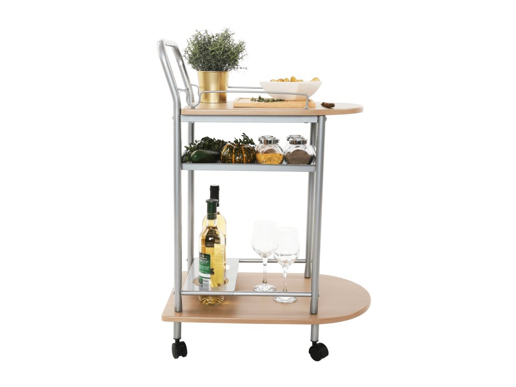 Servírovací stolík.Prevedenie: buk (MDF) + strieborná (kov).
