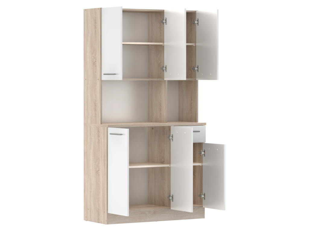 Šesťdverový kredenc, dub sonoma/biela, PELION NEW