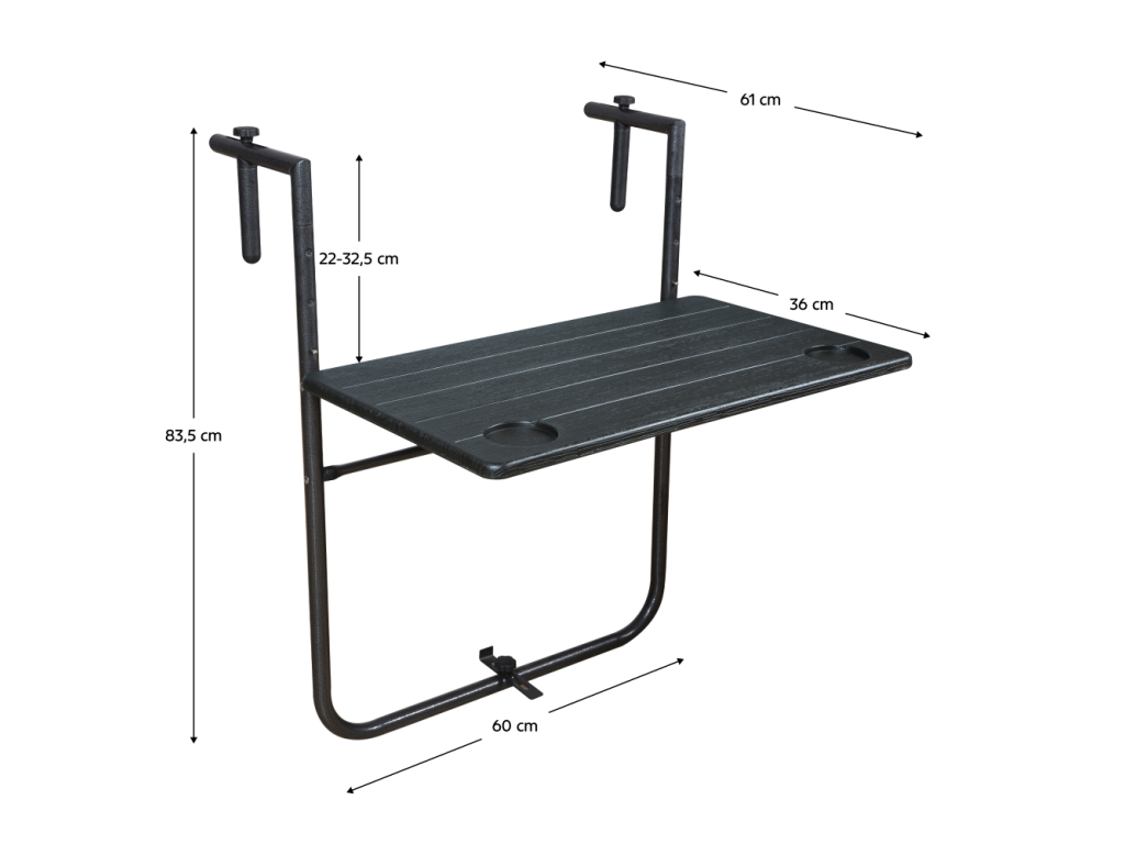 Skladací balkónový stolík, čierna, UZOR