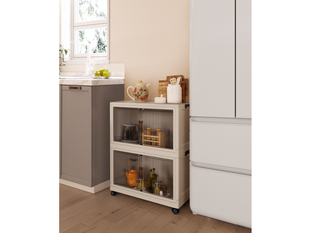 Skladacia skrinka, biela/hnedá, plast, POSA TYP 1