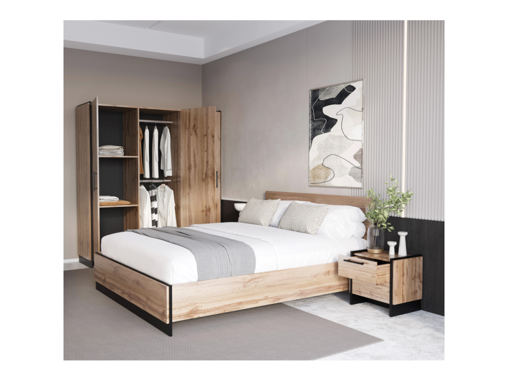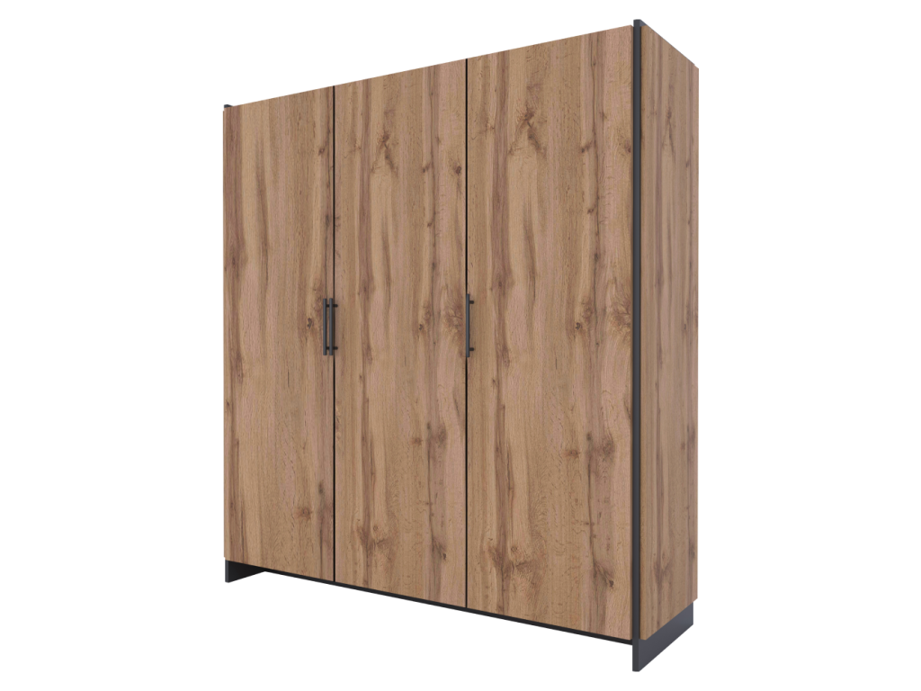 Skriňa, trojdverová, dub wotan/čierna, AMONI 3D