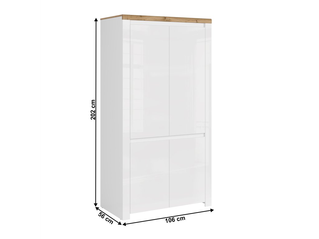 Skriňa 4D, biely lesk/dub wotan, VILGO