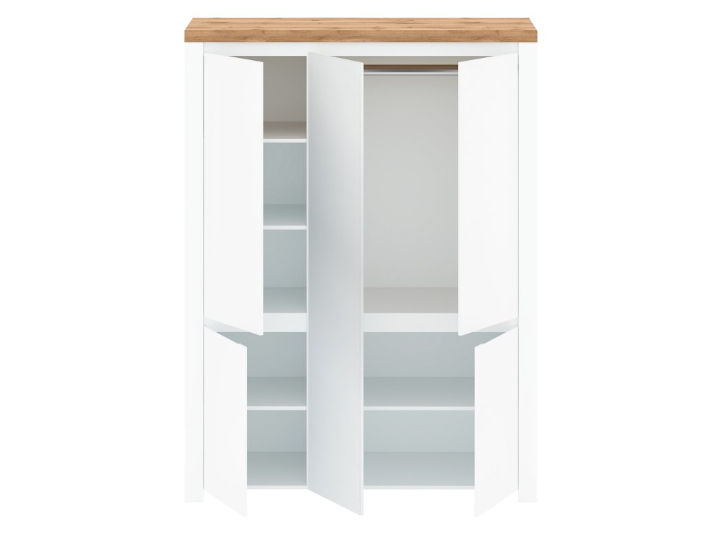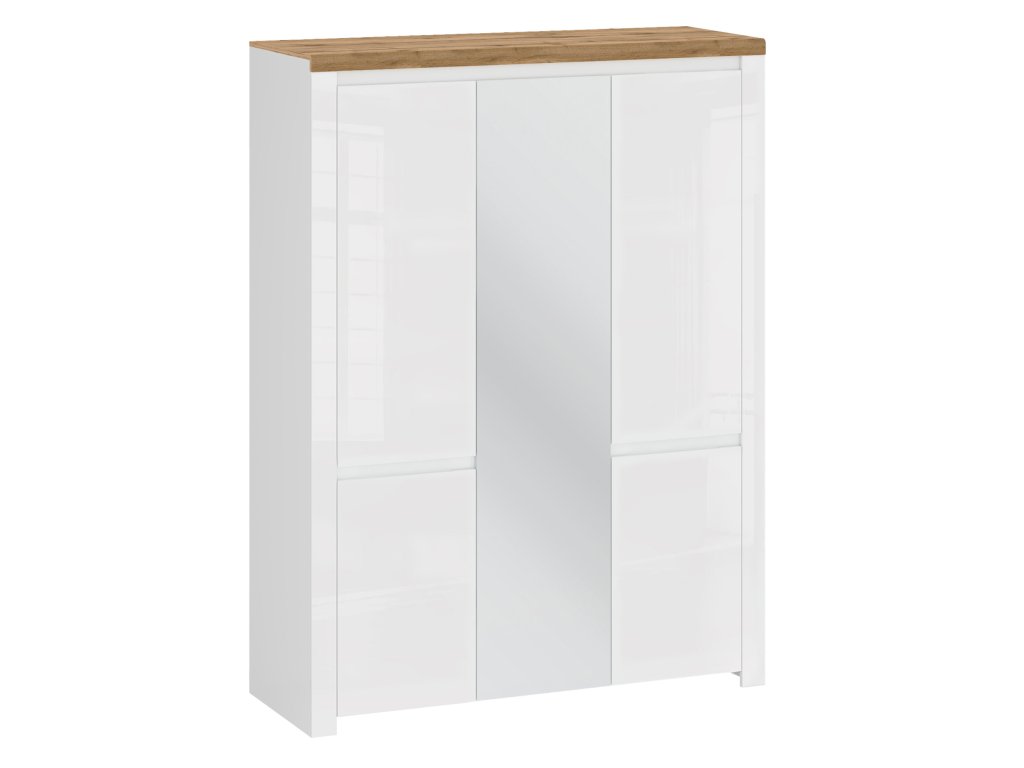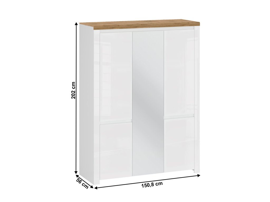 Skriňa 5D so zrkadlom, biely lesk/dub wotan, VILGO