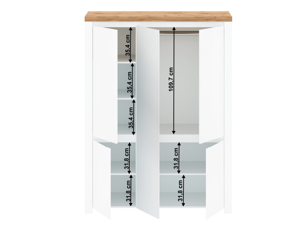 Materiál: DTD laminovaná/ABS hrany/MDFFarba: biely extra vysoký lesk/dub wotan