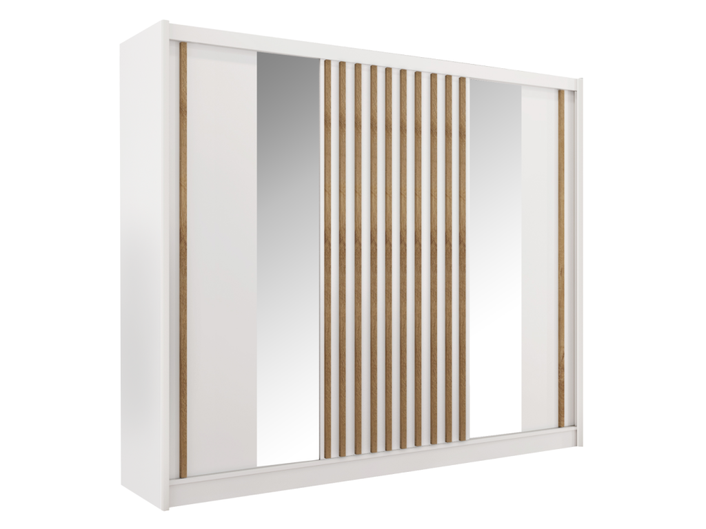 Skriňa s posuvnými dverami, biela/dub craft, 250x215 cm, LADDER