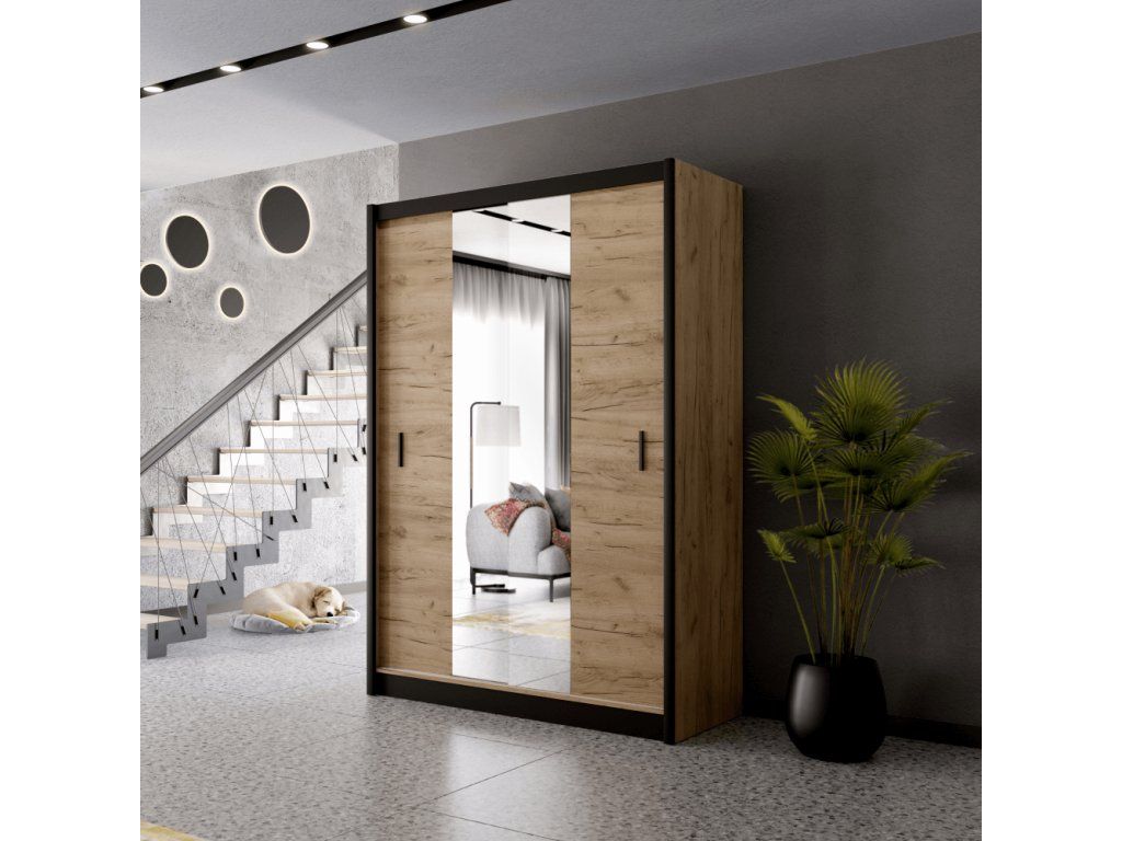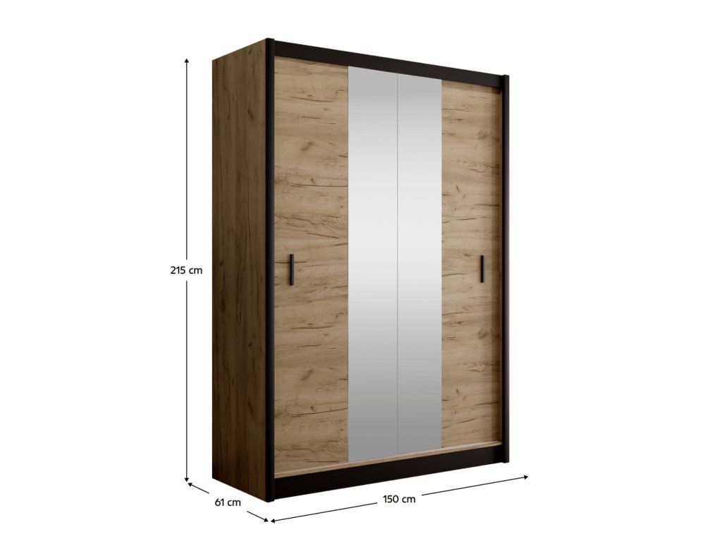 Skriňa s posuvnými dverami, čierna/dub craft, 150x215 cm, CRAFT