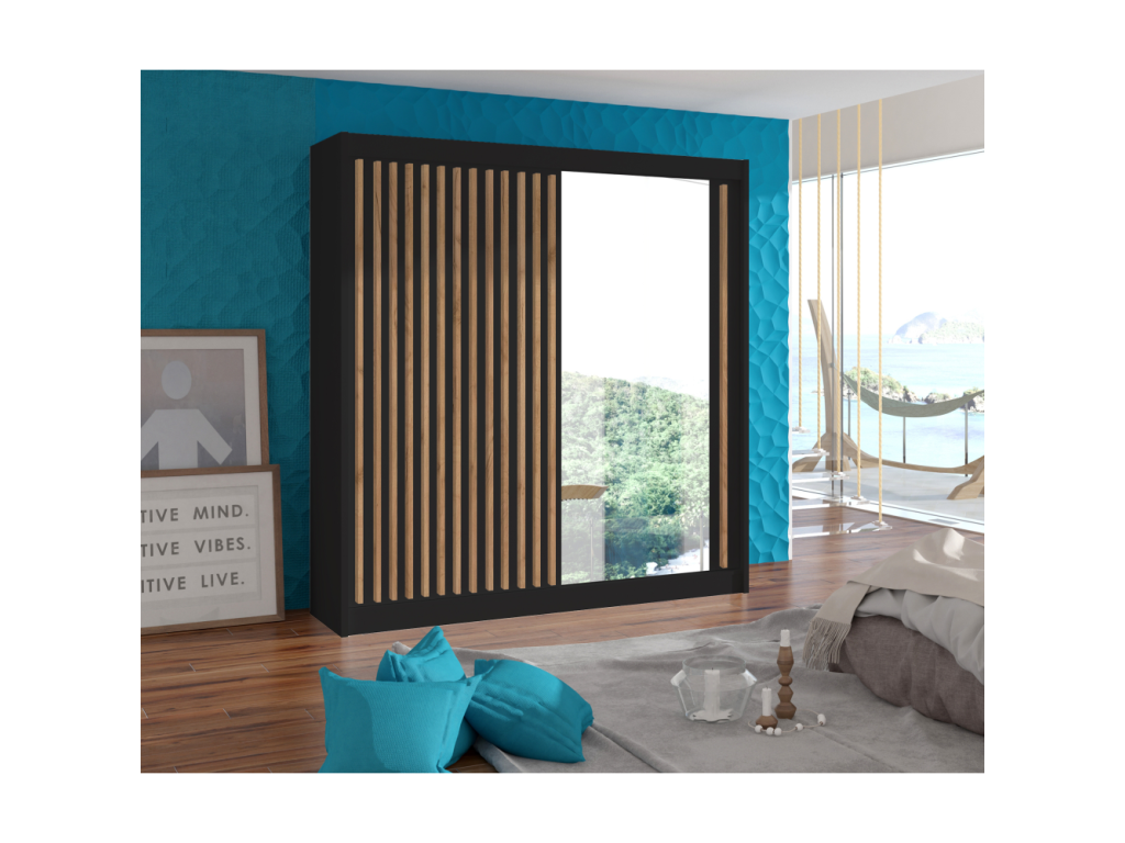 Skriňa s posuvnými dverami, čierna/dub craft, 203x215 cm, LADDER