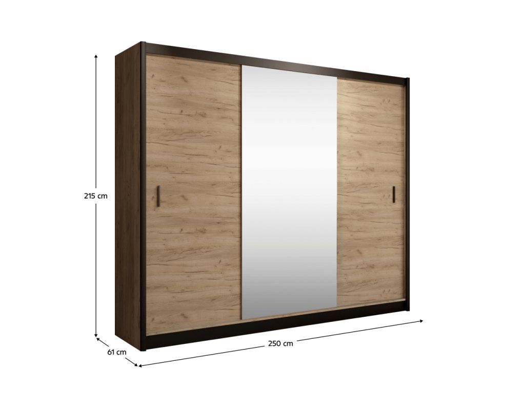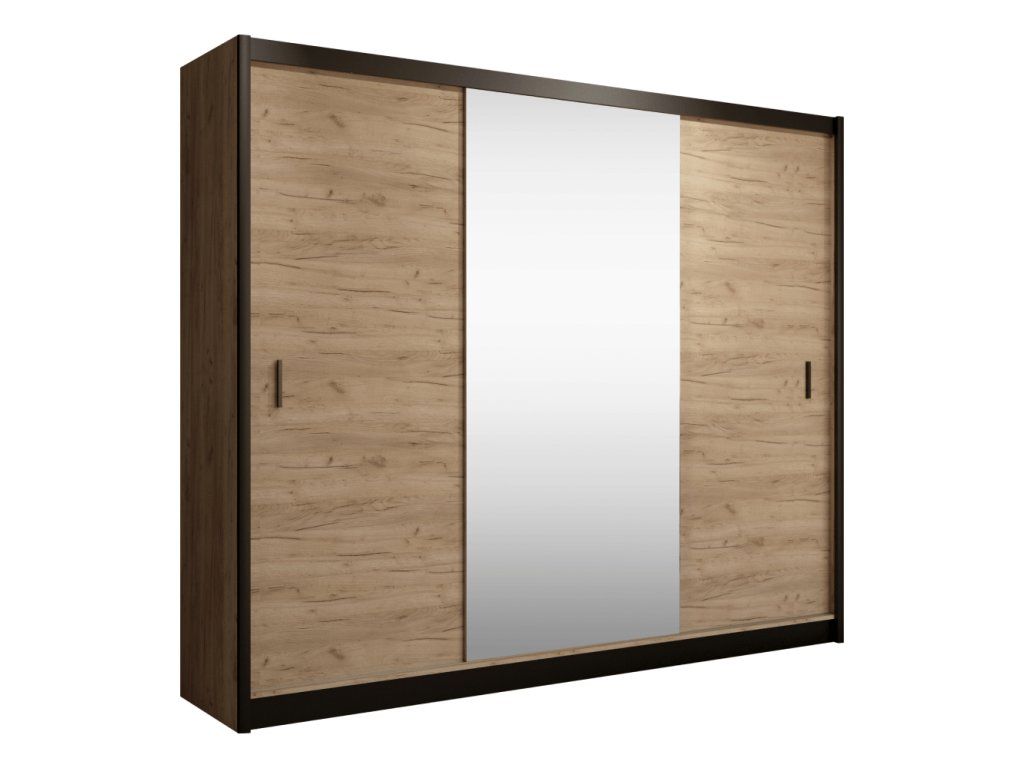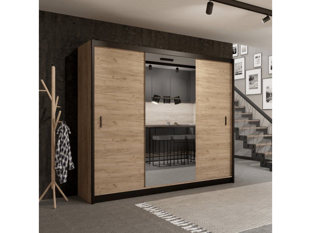 Skriňa s posuvnými dverami, čierna/dub craft, 250x215 cm, CRAFT