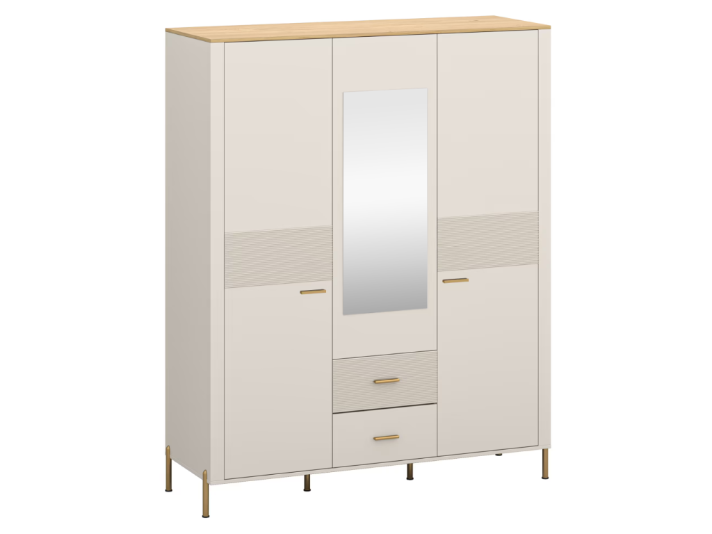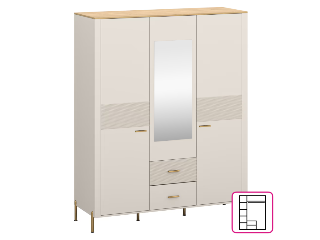 Skriňa so zrkadlom, kašmír/dub kamenný, RUNOL 3D2S