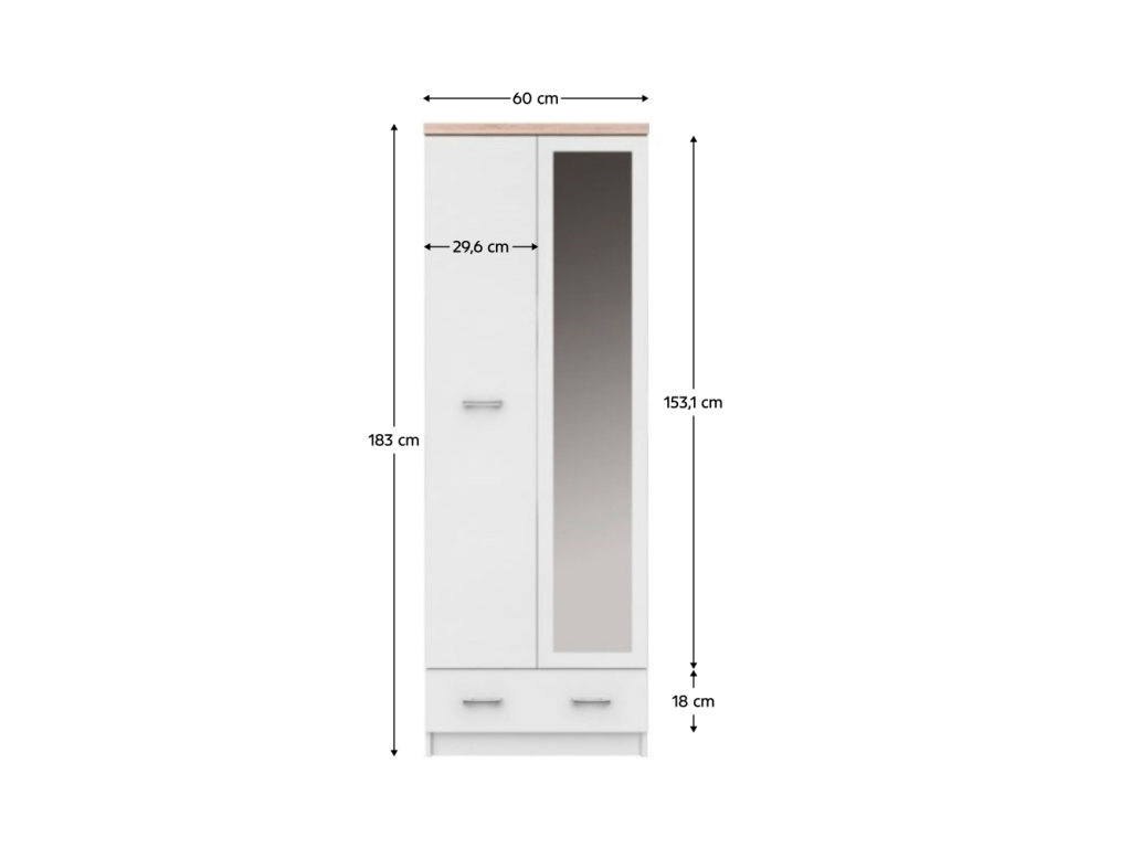 Skriňa so zrkadlom 2D1S/60, biela/dub sonoma, TOPTY TYP 37