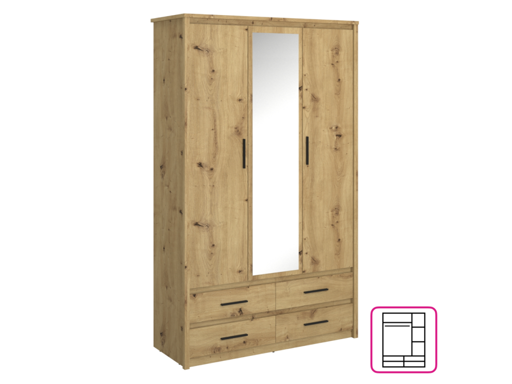Skriňa so zrkadlom 3D4S, dub artisan, AIRON
