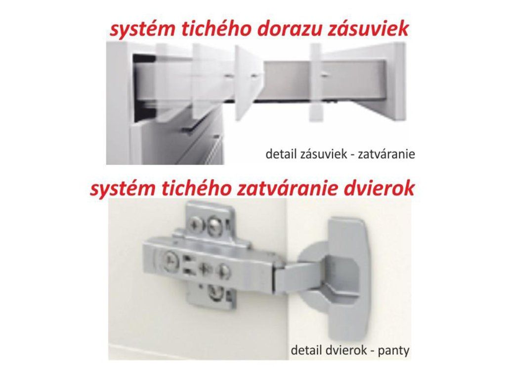 Možnosť dokúpenia univerzálneho Ľ/P drezu LAY ON. Možnosť dokúpenia pracovnej dosky naviac 38 mm za 63 Eur/bm.