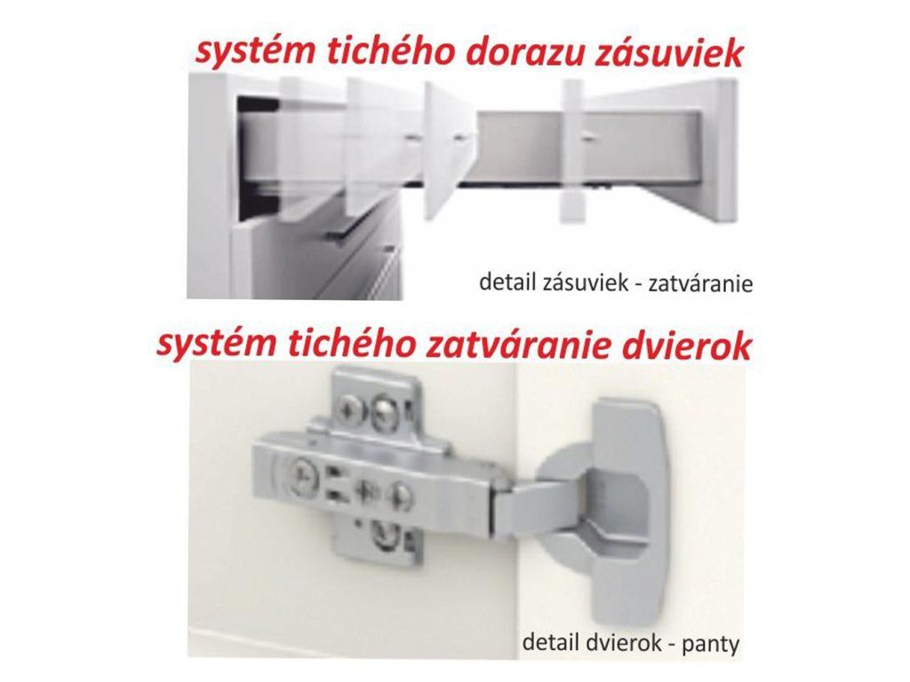 Možnosť dokúpenia univerzálneho Ľ/P drezu LAY ON. Možnosť dokúpenia pracovnej dosky naviac 38 mm za 63 Eur/bm.