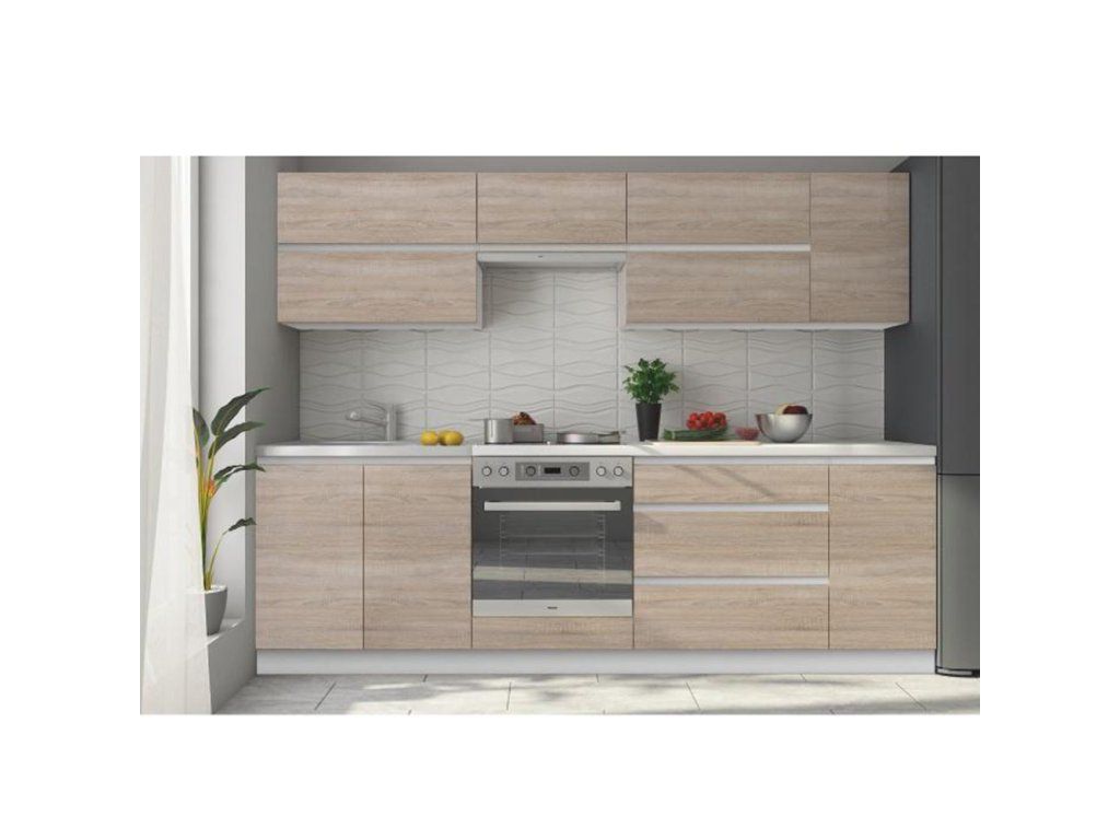 Možnosť dokúpenia univerzálneho Ľ/P drezu LAY ON. Možnosť dokúpenia pracovnej dosky naviac 38 mm za 63 Eur/bm.