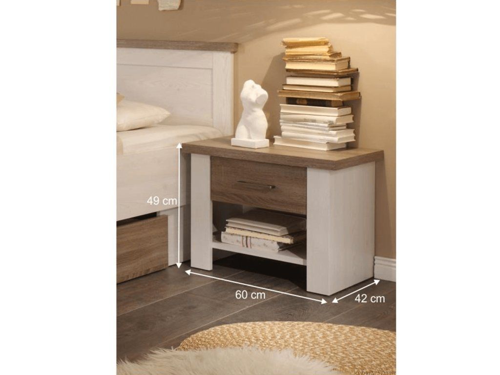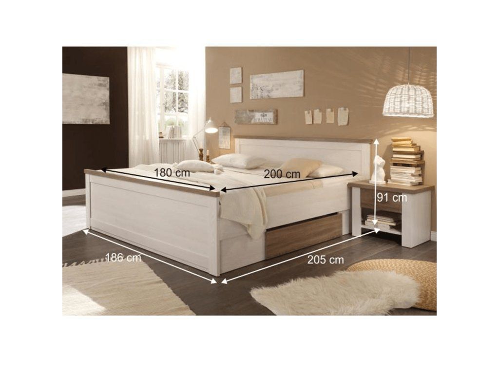 Spálňový komplet (posteľ, 2 nočné stolíky, skriňa), pínia biela/dub sonoma truflový, LUMERA