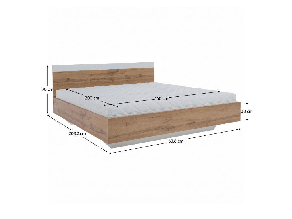 Spálňový komplet (posteľ 160x200 cm), dub wotan/biela, GABRIELA NEW