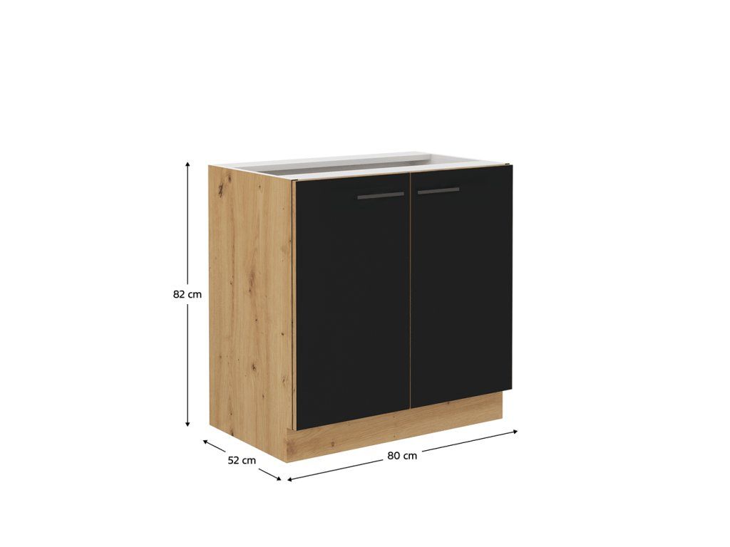 Spodná kuchynská skrinka, čierny mat/dub artisan, MONRO 80 D 2F BB