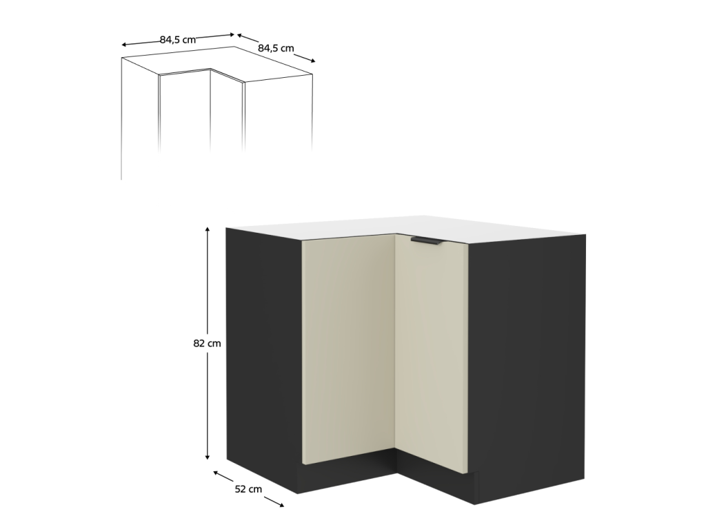 Spodná rohová skrinka, kašmír/čierna, ARAKA 90x90 DN 2F BB