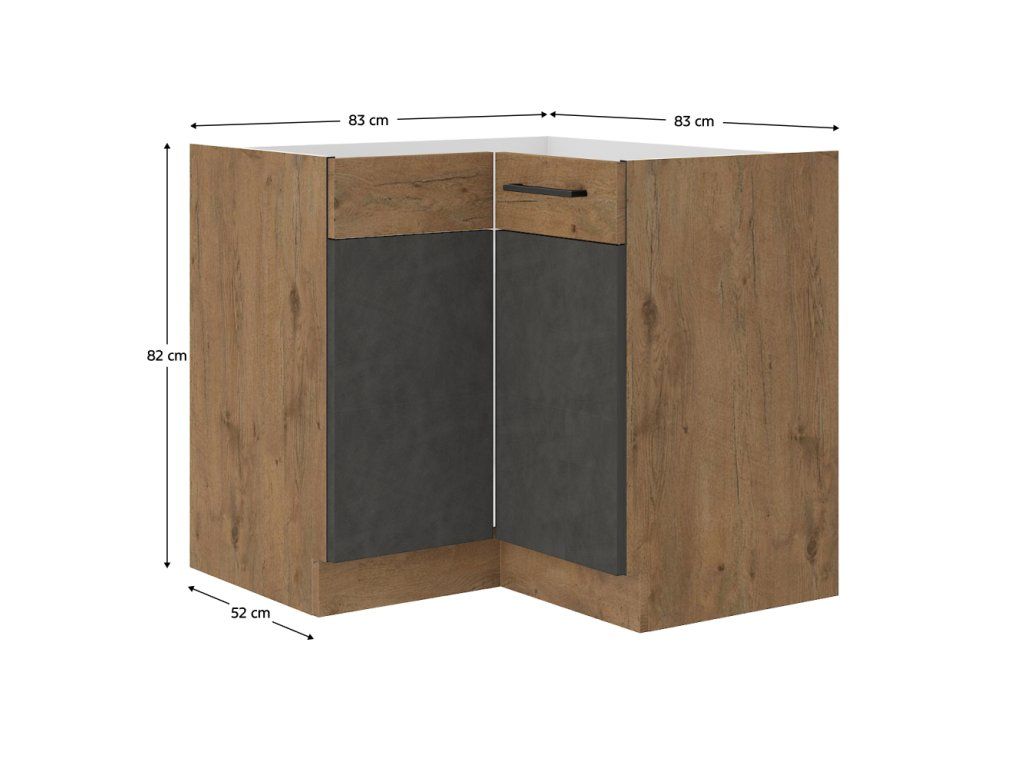 Spodná rohová skrinka, sivá matná/dub lancelot, VEGA 90x90 DN 1F BB