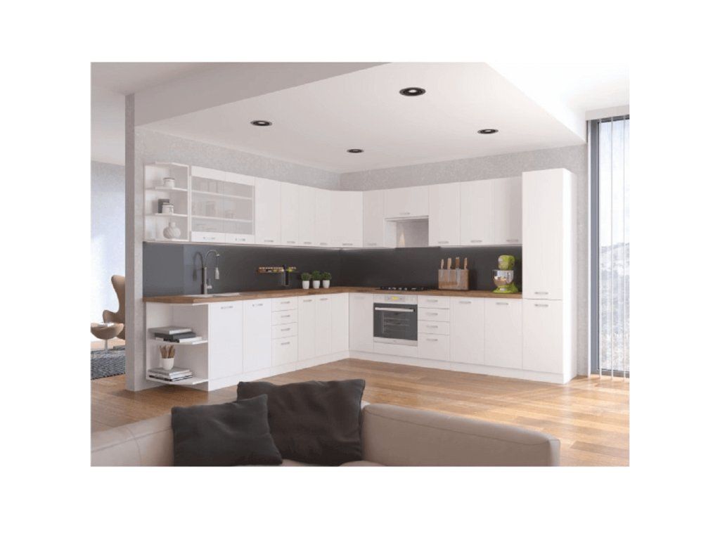 Spodné skrinky sú dodávané vrátane dolnej lišty. Pracovná doska nie je súčasťou skriniek. Je možné si doobjednať pracovnú dosku v prevedení dub lancelot za 59 eur/bm. Možnosť dokúpenia univerzálneho Ľ/P drezu LAY ON.