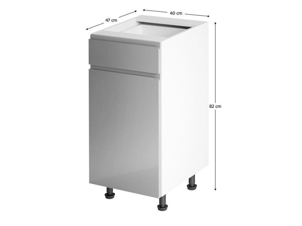 Spodná skrinka, biela/sivá extra vysoký lesk, ľavá, AURORA D40S1