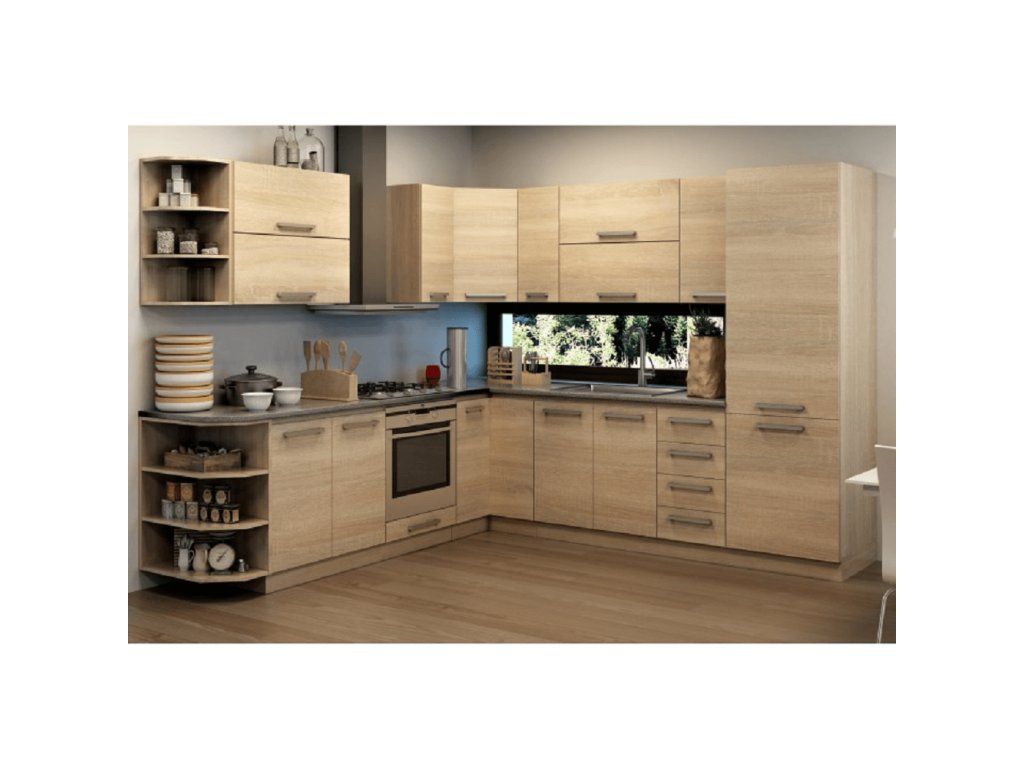 Skrinky ku kuchyni NOVA PLUS sú dodávané bez pracovnej dosky. Pracovnú dosku v prevedení granit antracit v hrúbke 38 mm je možné doobjednať za cenu 59 Eur/bm. Možnosť dokúpenia univerzálneho Ľ/P drezu LAY ON.