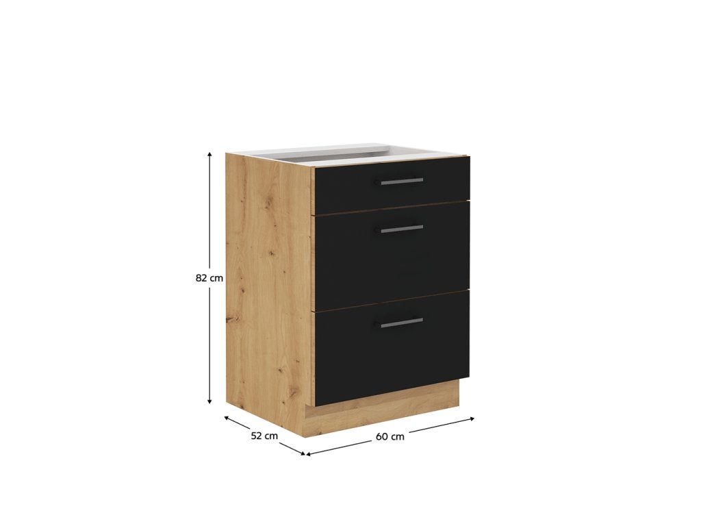Spodná skrinka so zásuvkami, čierny mat/dub artisan, MONRO 60 D 3S BB