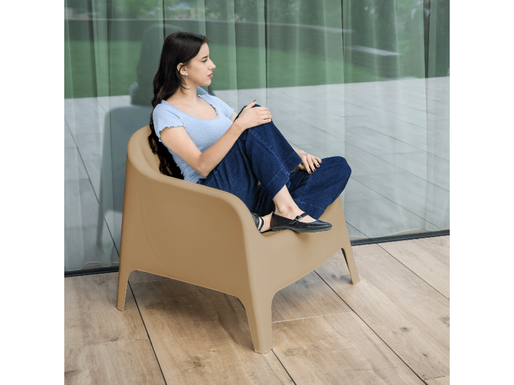 Stohovateľné kreslo, hnedá, plast, SOKRA NEW